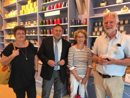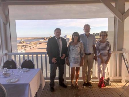 Accueil, le 23 juin dernier, à Gruissan de Michel Mauger, maire de Barfleur et de son épouse. Visites et échanges sur les bonnes pratiques du label européen Odyssea appliquées à la Destination Gruissan, une pause magique et gourmande au Salin de Patrice Gabanou.