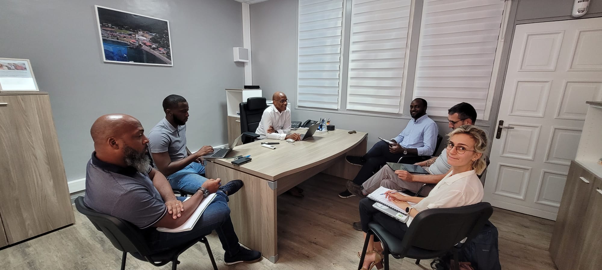 18 juillet 2024 – Monsieur le Maire de Bouillante, Thierry Abelli, également Président de la Communauté d’Agglomération Grand Sud Caraïbe et son équipe, se sont réunis avec le Conservatoire du littoral et M. Chasseuil, Scic OdysSEA, sur l’aménagement de la plage de Petite Anse en « Plage Bleue d’Avenir », dans le cadre de la labellisation « Bouillante, Ville Bleue d’Avenir, Capitale de la Mer ». La Plage Bleue d’Avenir est un pôle d’excellence de la Ville Bleue d’Avenir et de la Destination Bleue d’Excellence qui s’inscrit dans un projet de territoire se spécialisant dans l’économie bleue durable. Un projet de territoire innovant intégrant la plage à sa ville, à la mer, et à son terroir.