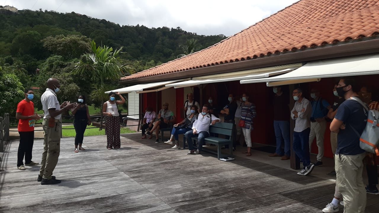 Direction le domaine Maison La Mauny, à Rivière-Pilote, pour clôturer l’éductour des Routes Bleues Mythiques de la Martinique et des Caraïbes, distillerie qui sera partie prenante, avec d’autres distilleries membres du CODERUM (Habitation Clément, A1710…), de la mise en place d’un spiritourisme de destination (découverte des rhumeries, paysages, patrimoines, restaurants…, vus de la mer), par la création de la Route Bleue Mythique sur la thématique « De la Canne à Sucre au Rhum Patrimoine ». Une vision innovante d’un écotourisme d’itinérance thématique durable et inclusif !