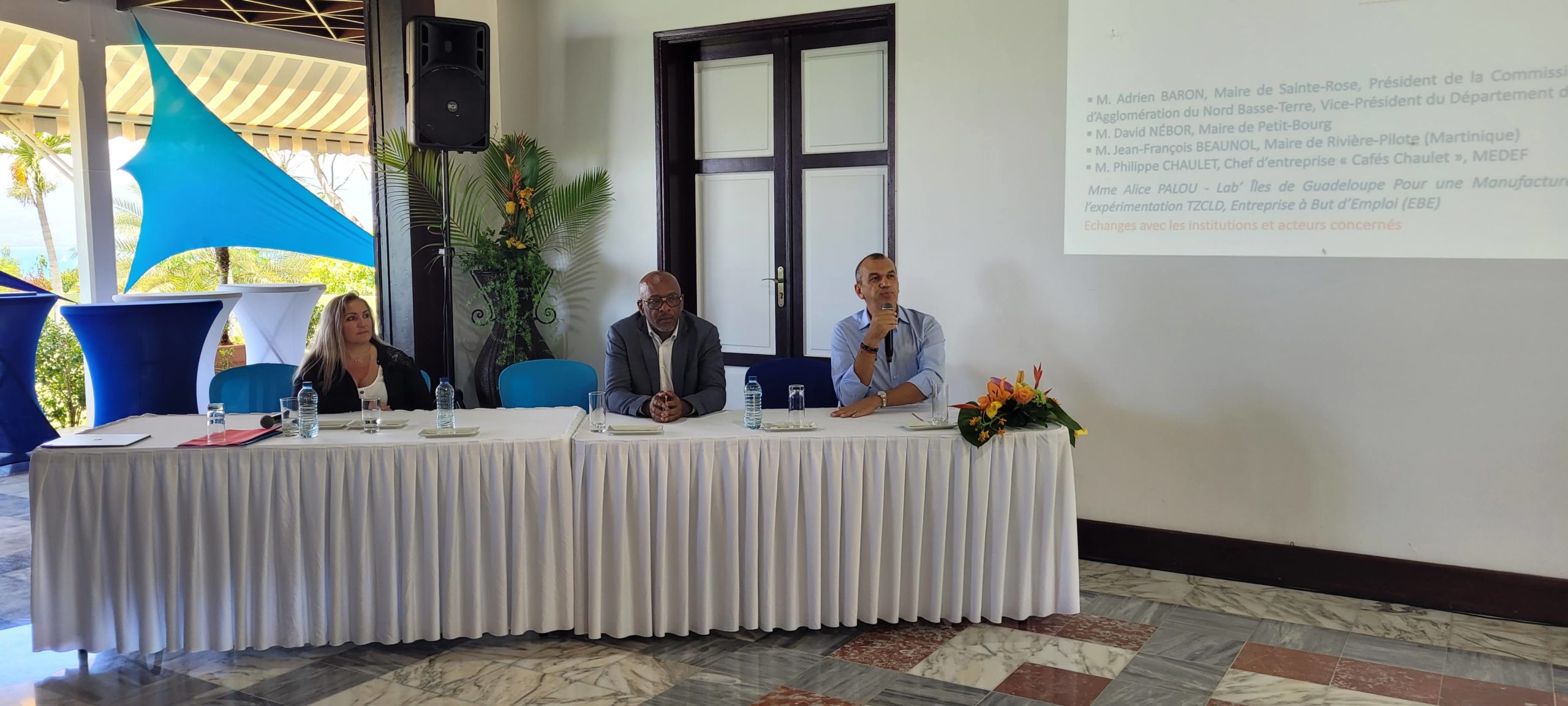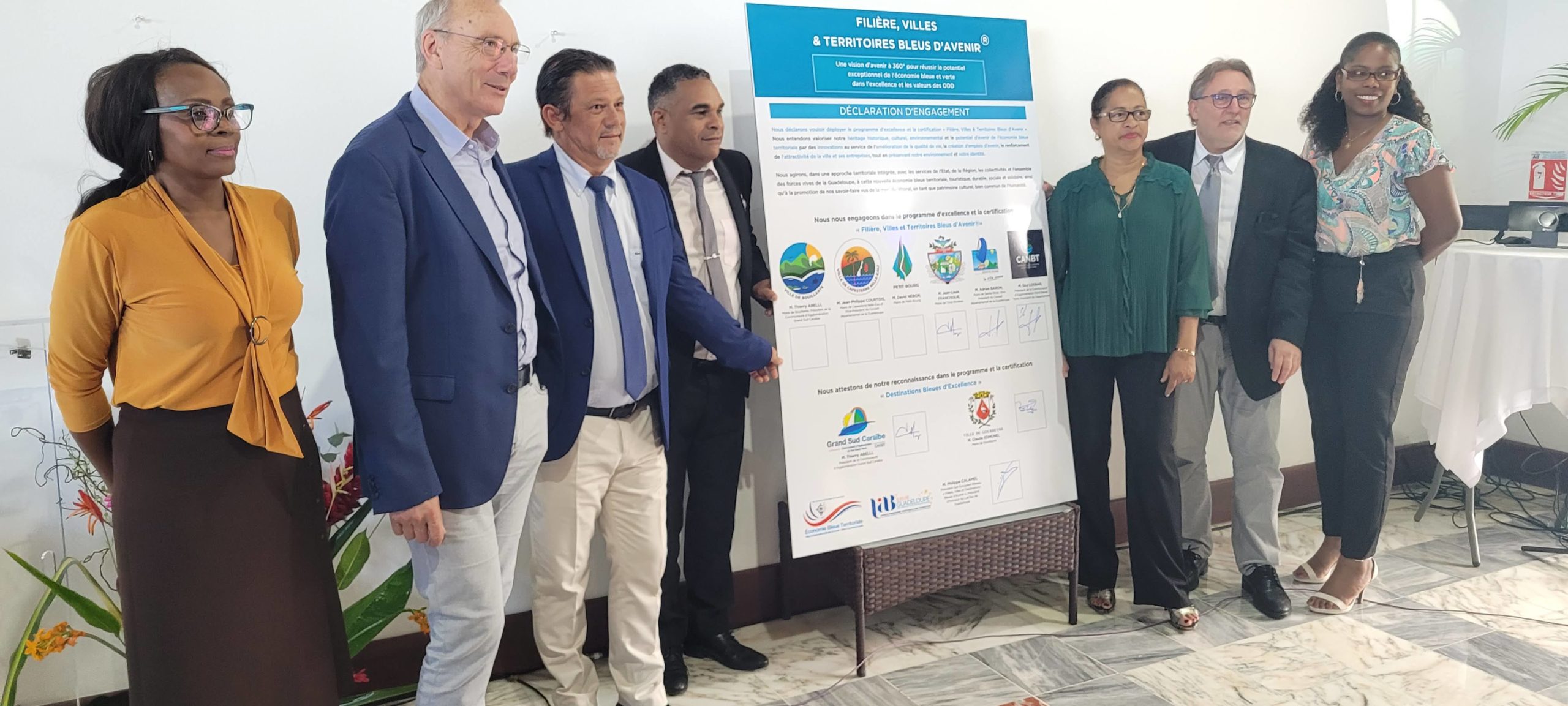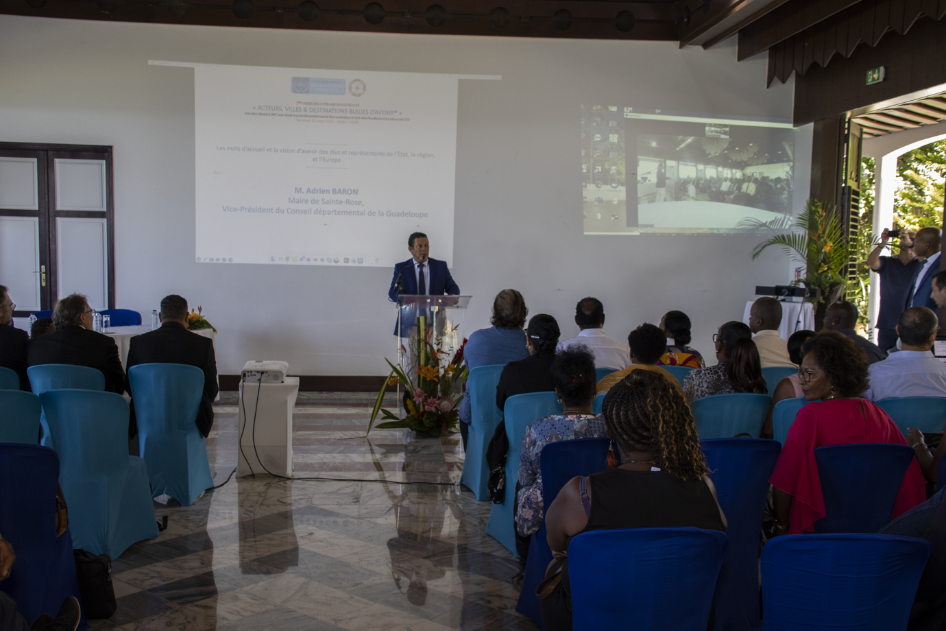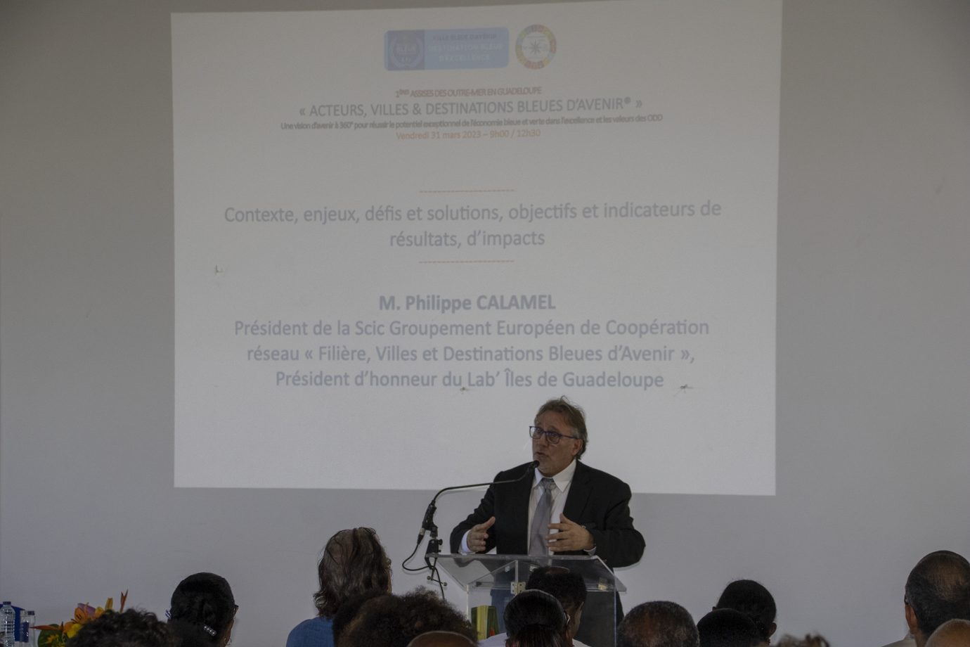 Les 1ères Assises des Outre-Mer en Guadeloupe « Filière, Villes et Destinations Bleues d’Avenir » étaient présidées par M. Adrien Baron, Maire de Sainte-Rose, Vice-président du Département et M. Philippe Calamel, Président de la Scic Groupement Européen de Coopération Réseau « Filière, Villes et Destinations Bleues d’Avenir », Président d’honneur du Lab’Iles de Guadeloupe, en présence des institutions régionales et des Maires des Villes et Présidents des Territoires Bleus d’Avenir, pionniers d’une nouvelle économie bleue territoriale, durable, sociale et solidaire :