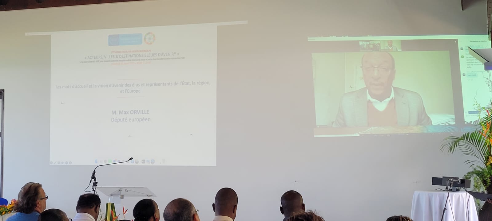 M. Max ORVILLE, Député européen, qui a déclaré : « Les thématiques que vous allez traiter aujourd’hui sont au cœur de mes préoccupations et des préoccupations du gouvernement car l’économie bleue est un marqueur de développement des régions périphériques. M. Orville a conclu son intervention par son profond soutien : « Vous pouvez être assurés de toute ma détermination pour vous accompagner dans vos décisions auprès de l’Union européenne ».