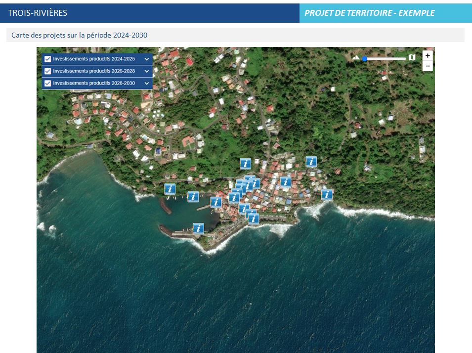 L’objectif du projet territorial, d’innovation et des transitions « Trois-Rivières, Terre Amérindienne, Ville Bleue d’Avenir, Capitale Patrimoine de la Mer » est de rendre unique et attractive la destination bleue et verte touristique de Trois-Rivières, pour un développement inclusif et durable, une grande attractivité touristique et de nouveaux emplois bleus. Ce développement se fera avec toutes les forces vives de Guadeloupe, et au coeur de ce projet, nous retrouvons les entreprises, associations et acteurs locaux du Tourisme Bleu durable du territoire de Trois-Rivières, qui vont bénéficier des innovations, outils, moyens d’accompagnement dans le cadre de ce projet territorial, en devenant des « Adresses Recommandées », des étapes certifiées de la Destination « Trois-Rivières, Terre Amérindienne, Ville Bleue d’Avenir, Capitale Patrimoine de la Mer ».