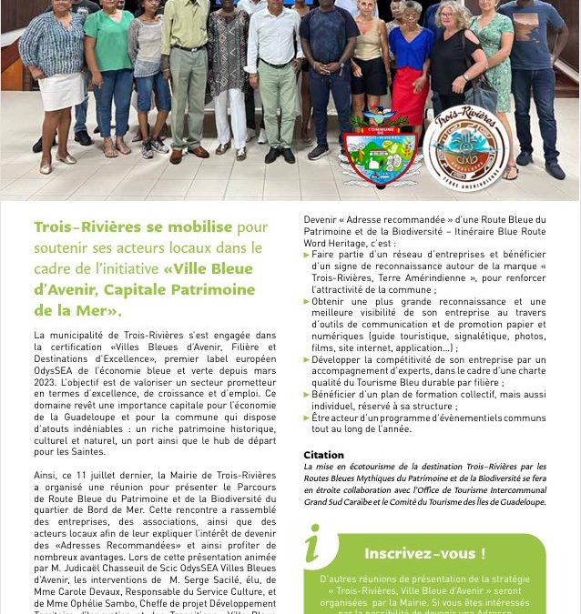 Zoom dans le bulletin municipal de Trois-Rivières sur sa mobilisation pour les acteurs locaux, dans le cadre de son projet de territoire « Ville Bleue d’Avenir » Le 11 juillet 2024, M. Jean-Louis Francisque, Maire de Trois-Rivières, accueillait des entreprises,...