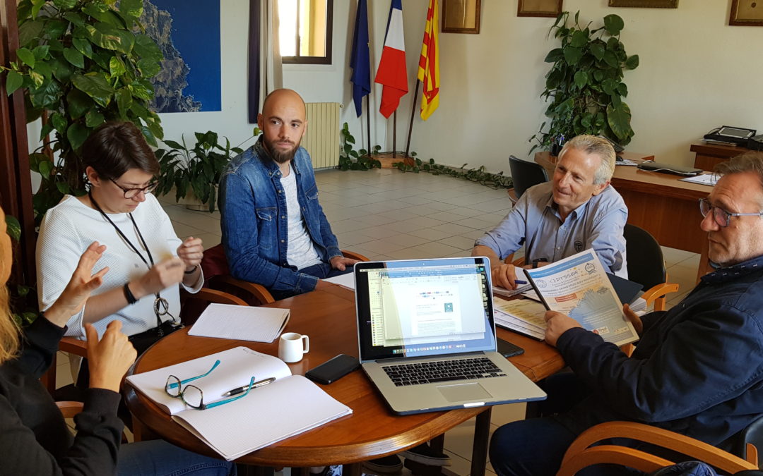 Réunion, le 06 juin 2018, entre Béatrice Soubielle, Ville de Banyuls-sur-Mer, Antoine Mascunano, Directeur de l’Office de tourisme (OT), Anthony Guillemer, OT Banyuls-sur-Mer, et Judicael Chasseuil Pro, Chef de projets Odyssea Tourisme et Croissance Bleue,...