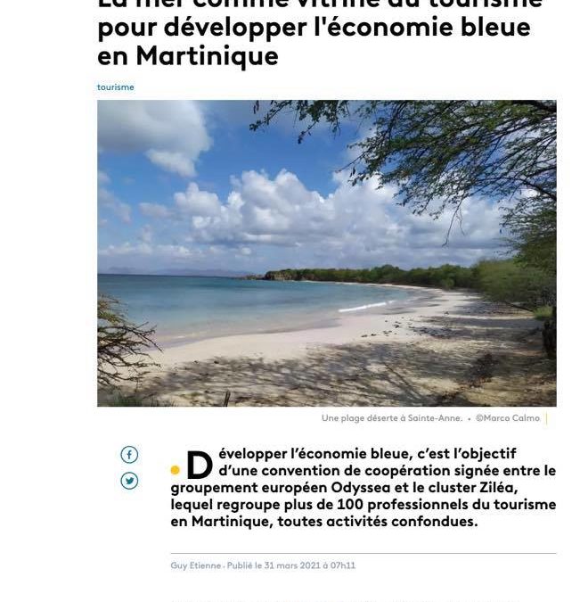 La convention de coopération pour le développement de l’économie bleue et du tourisme durable en Martinique a été signée le 24 mars dernier, par le Président de Ziléa (le Cluster du tourisme en Martinique), Philippe Lecuyer, et Guy Gamess, Délégué Odyssea...