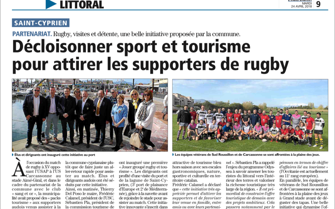 C’est le 22 avril 2018, à l’occasion du match de rugby USAP-US Carcassonne, que Thierry Del Poso, Maire de Saint-Cyprien, Sébastien Pla, Président de la commission Tourisme de la Région Occitanie, des Elus catalans et audois, Frédéric Calamel, Président de...