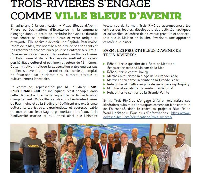 La Commune de Trois-Rivières s’est engagée en mars 2023 dans la certification « Villes Bleues d’Avenir, Filière et Destinations d’Excellence » du 1er label européen OdysSEA de l’économie bleue et verte, pour capitaliser un secteur porteur d’excellence, de croissance...