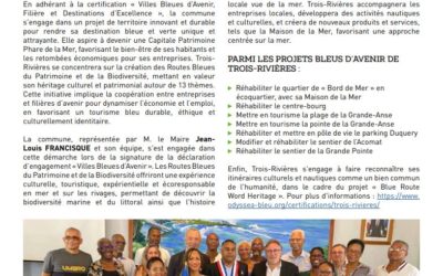 Zoom dans le bulletin municipal de Trois-Rivières sur sa mobilisation pour les acteurs locaux, dans le cadre de son projet de territoire « Ville Bleue d’Avenir »