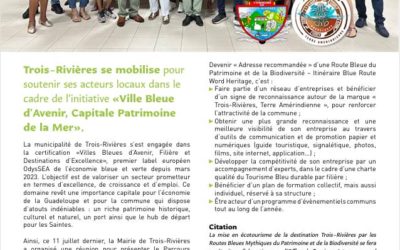Trois-Rivières s’engage dans la certification « Villes Bleues d’Avenir, Filière et Destinations d’Excellence » !